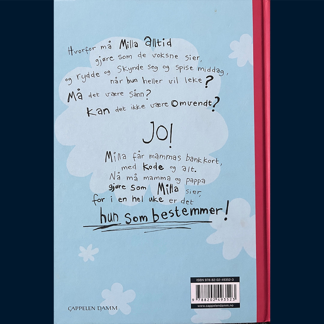 Selma Lønning Aarø og illustratør Tiril Valeur leverer en sjarmbombe av en barnebok, som tar den moderne familien på kornet. Den første boka om Milla er full av treffende og gjenkjennelige situasjoner, bare at det meste er skrudd til noen hakk, for ikke å si snudd helt på hodet.