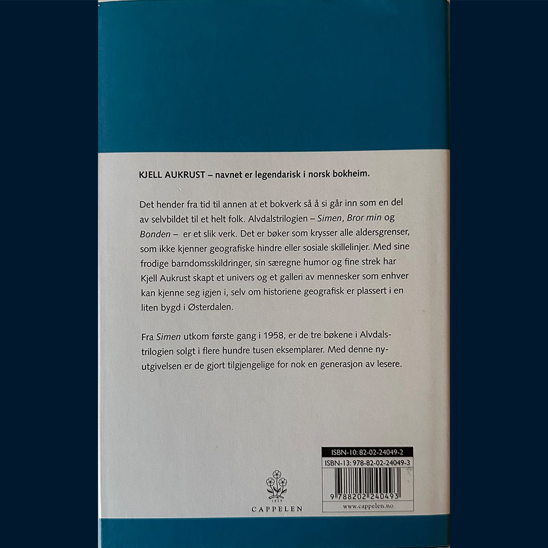 Alvdalstrilogien – Simen, Bror min og Bonden – er et slik verk. Det er bøker som krysser alle aldersgrenser, som ikke kjenner geografiske hindre eller sosiale skillelinjer. Med sine frodige barndomsskildringer, sin særegne humor og fine strek har Kjell Aukrust skapt et univers og et galleri av mennesker som enhver kan kjenne seg igjen i, selv om historiene geografisk er plassert i en liten bygd i Østerdalen.