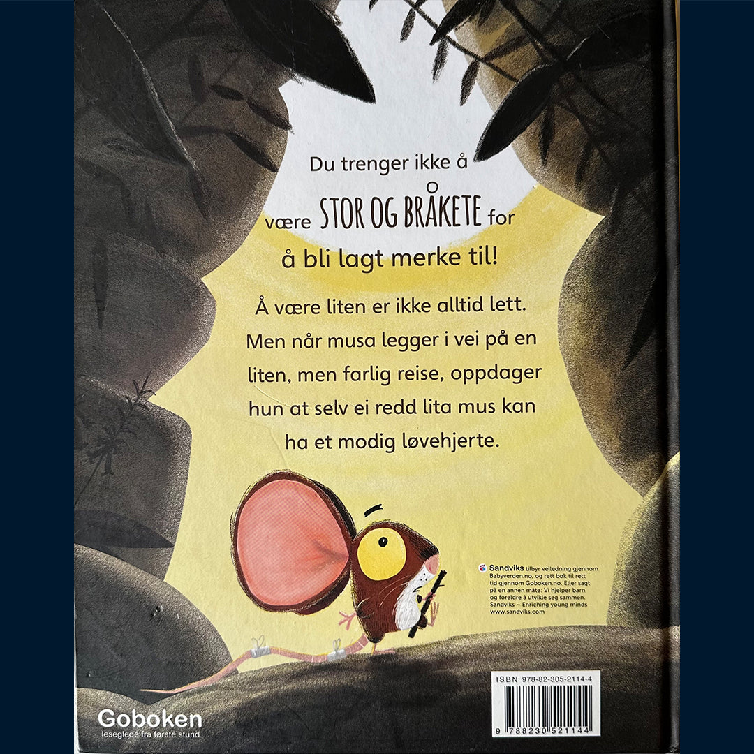 Løven og musa er en herlig historie om ei mus som er så engstelig, beskjeden og stille at ingen av de andre dyrene på savannen legger merke til henne. Men en natt bestemmer hun seg for å gjøre noe med det. Hun tar mot til seg og går til den store, farlige løven. Kanskje han kan lære henne å brøle? Møtet blir ikke helt slik musa så for seg ... Med rytmisk driv og klingende rim blir teksten ekstra engasjerende og morsom for de minste.