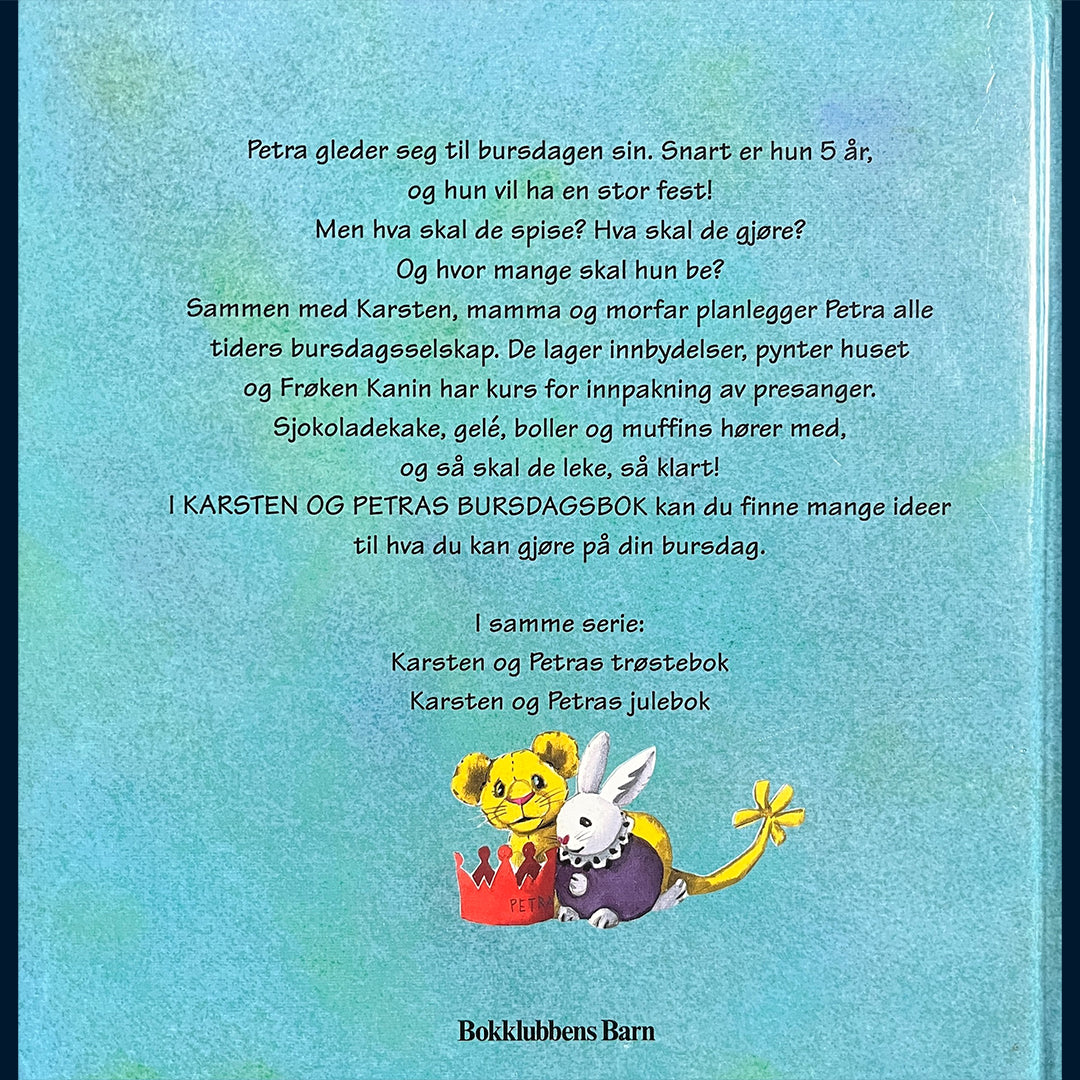 I denne aktivitetsboka får vi oppleve forberedelsene til Petras 5 års-dag. Tips til invitasjoner, leker og mat. Barna kan gjøre mange av forberedelsene selv og det behøver ikke koste så mye.