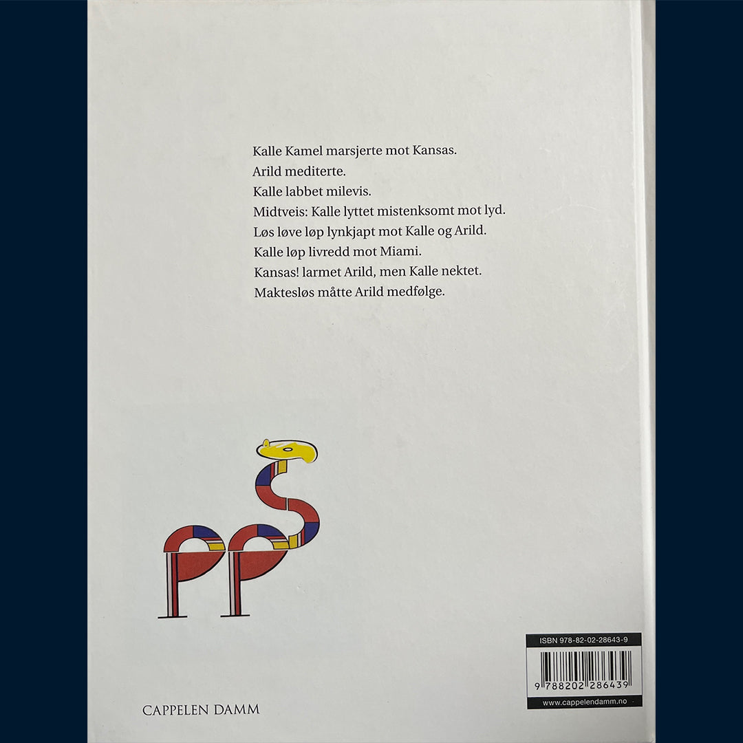 Alt kan skje i Fam Ekmans nye bildebok om Arild som kjøper en billig billett og havner i California. Boken er en fantasifull alfabetfortelling med Arild og Frida og Kamelen Kalle i de utroligste situasjoner. Alle som liker å smake og tygge på ord kan glede seg til denne helt spesielle bildeboken.