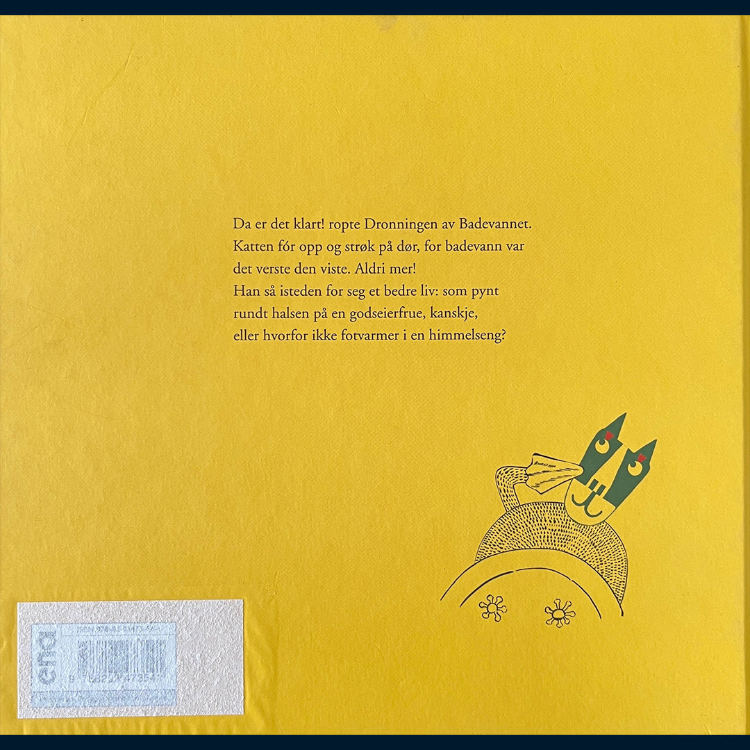 Å bade er ikke noe for en katt! Trusselen om et slikt bad skremmer katten i denne historien ut på eventyr. Det blir en sprelsk reise til en eksentrisk godseierfamilie, med hester, griser og etter hvert; en konkurrerende katt. Her må katten melde pass, men møter på sin vei videre en havfrue med en viktig melding, og må ta et stort valg: Bade eller ikke bade?
