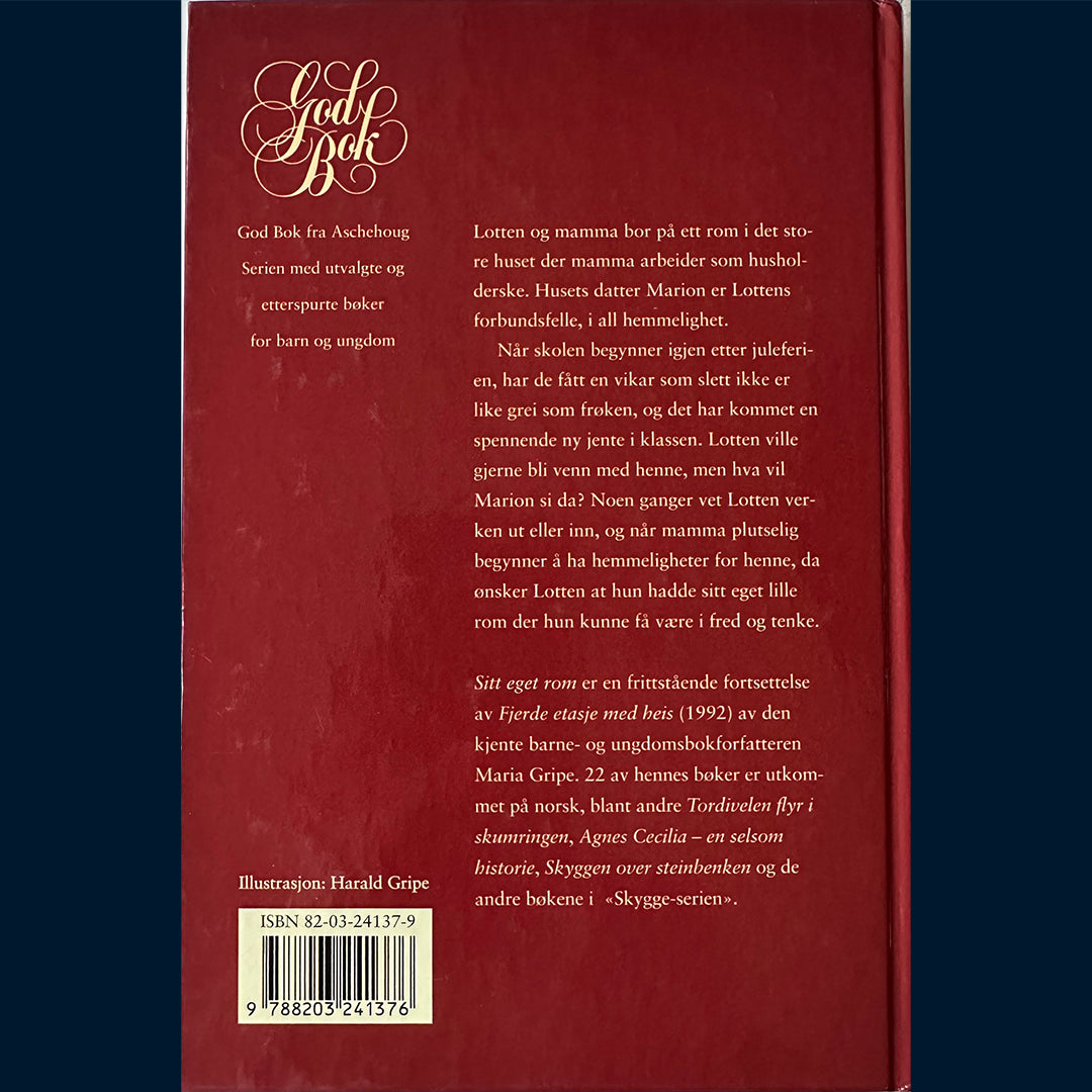 Dette er en frittstående fortsettelse av "Fjerde etasje med heis". Lotten og moren bor på ett rom i det store huset hvor moren arbeider som husholderske. Marion, husets datter, er Lottens forbundsfelle, men de kan bare omgås i smug. Lottens mor får seg en ny kjæreste, noe Lotten ikke er begeistret for. Hun synes moren forandrer seg for mye. Lotten ønsker seg et eget rom der hun kunne få være i fred og tenke. Det kunne sikkert moren også trenge, men det er det bare Lotten som forstår. Handlingen er lagt til tiden før annen verdenskrig.