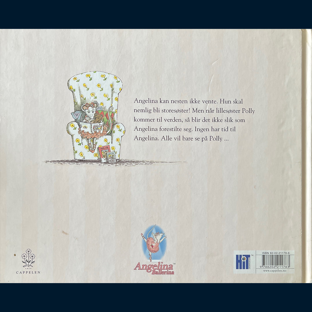 Angelina kan nesten ikke vente. Hun skal nemlig bli storesøster. Men når lille Polly kommer til verden, så blir det ikke slik som Angelina forestilte seg. Ingen har tid til Angelina. Alle vil bare se på Polly. Angelina er kjent fra NRK barne-tv.