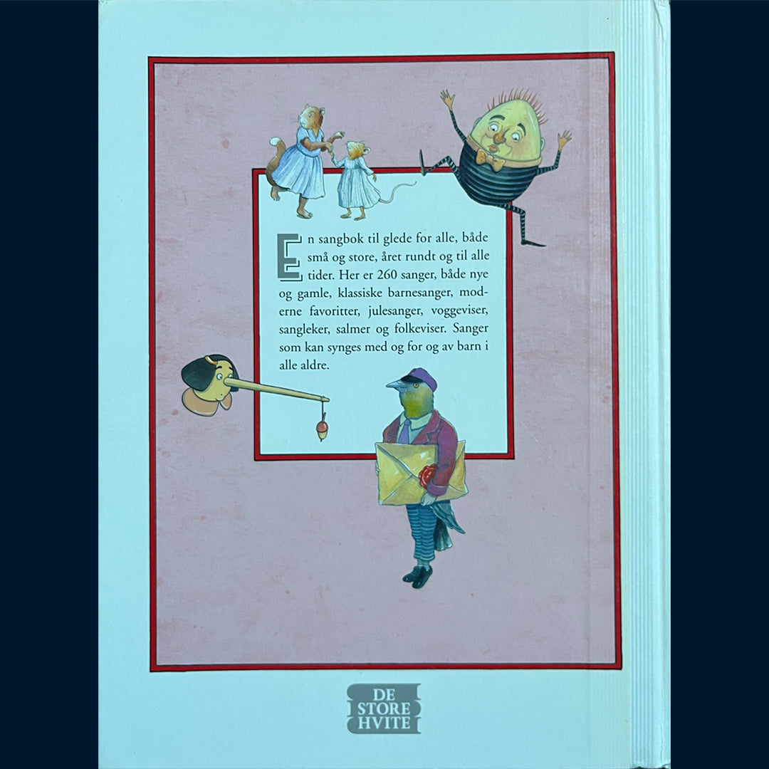 En sangbok til glede for alle, både små og store, året rundt og til alle tider. Her er 260 sanger, nye og gamle, klassiske barnesanger, moderne favoritter, julesanger, voggeviser, sangleker, salmer og folkeviser. Sanger som kan synges med og for og av barn i alle aldre.