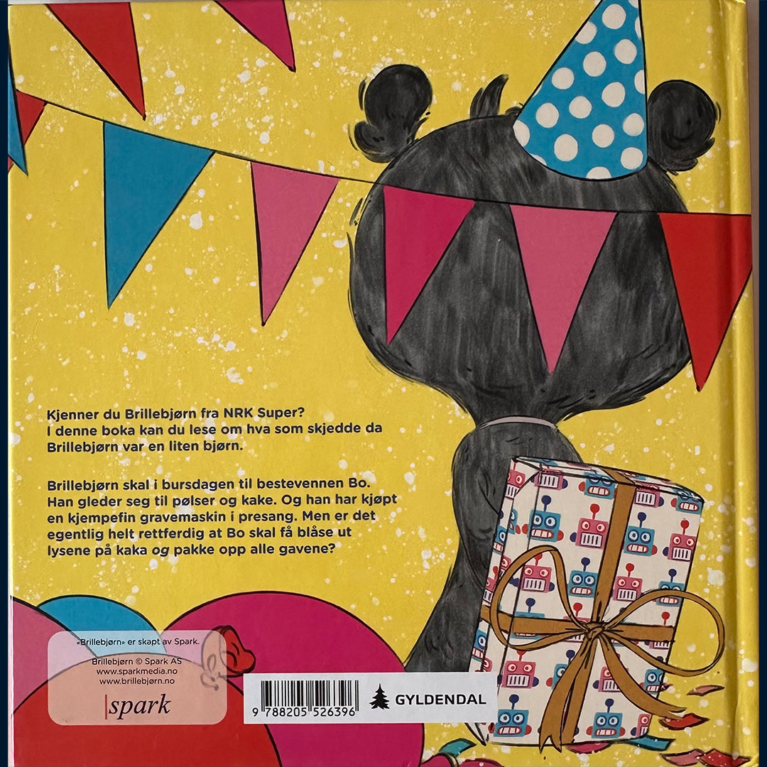 Brillebjørn skal i bursdagen til bestevennen Bo. Han gleder seg til pølser og kake. Og han har kjøpt en kjempefin gravemaskin i presang. Men er det egentlig helt rettferdig at Bo skal få blåse ut lysene på kaka OG pakke opp alle gavene?