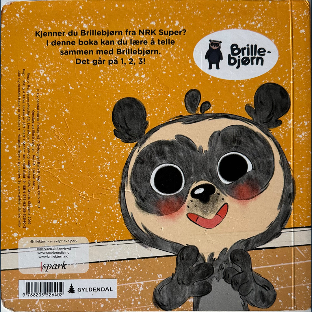 Lær å telle med Brillebjørn! Kjenner du Brillebjørn fra NRK Super? I denne boka kan du lære å telle sammen med Brillebjørn. Det går på én, to, tre! Mamma skal hente Brillebjørn i barnehagen, men det går ikke helt som planlagt. Nydelig og morsom tellebok på rim for de aller minste, lagd i slitesterk papp slik at boka kan leses igjen og igjen og igjen, med masse morsomme ting å telle på hver eneste side.