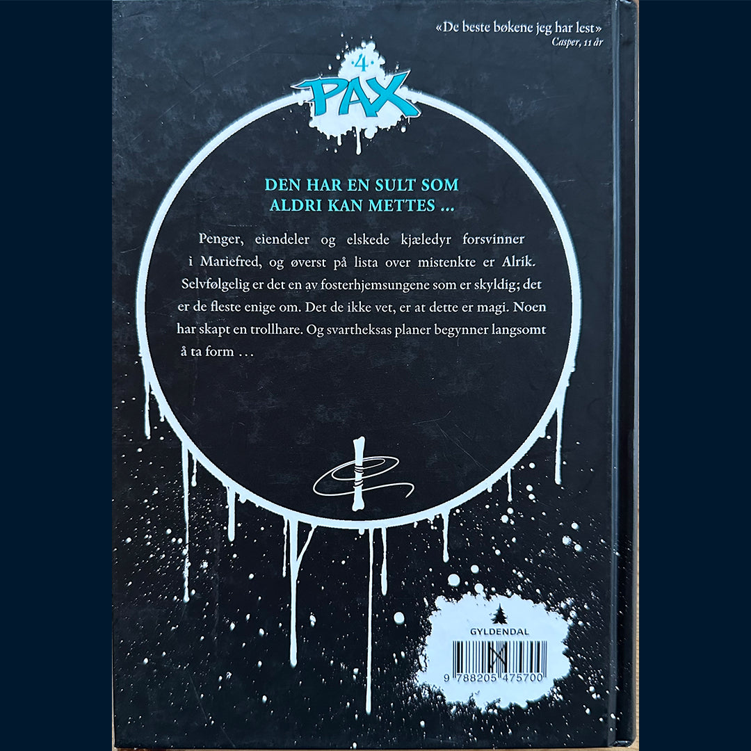 Magi, mystikk og grøssende spenning i fjerde bok i PAX-serien En utburd har herjet i Mariefred, og brødrene Alrik og Viggo har hjulpet den til å få ro. Men det de ikke vet, er at den mystiske Iris smir sine egne planer. Hvem er hun egentlig, og hva vil hun med Alrik og Viggo? Ting begynner å forsvinne fra husene i byen, og Alrik står høyt oppe på lista over mistenkte. Men det folk i Mariefred ikke vet, er at det ligger magi bak tyveriene. Noen har skapt en trollhare! Vennskap og søskenforhold settes på prøve i fjerde bok i suksesserien.