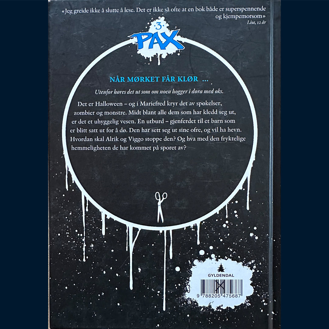 Tredje bok i suksess-serien PAX - begynner der Grimen, bok nummer to, sluttet. Brødrene Viggo og Alrik, som er utvalgt til å være det hemmelige og magiske bibliotekets voktere, har kjempet mot en kirkegrim. Alrik er alvorlig skadet, og onde krefter har angrepet biblioteket. Halloween og allehelgensdag nærmer seg - tiden da trollpakk og spøkelser får ekstra krefter og evner. Et slikt vesen har nå bestemt seg for å ta hevn. Hvordan skal brødrene stoppe det? Og hvem er den mystiske Iris egentlig?