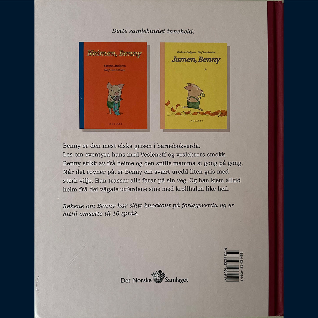 To herlege bøker om veslegrisen Benny samla i éi! Barbro Lindgrens veslegris Benny er ein av dei tøffaste og mest elska grisene i barnebokverda.