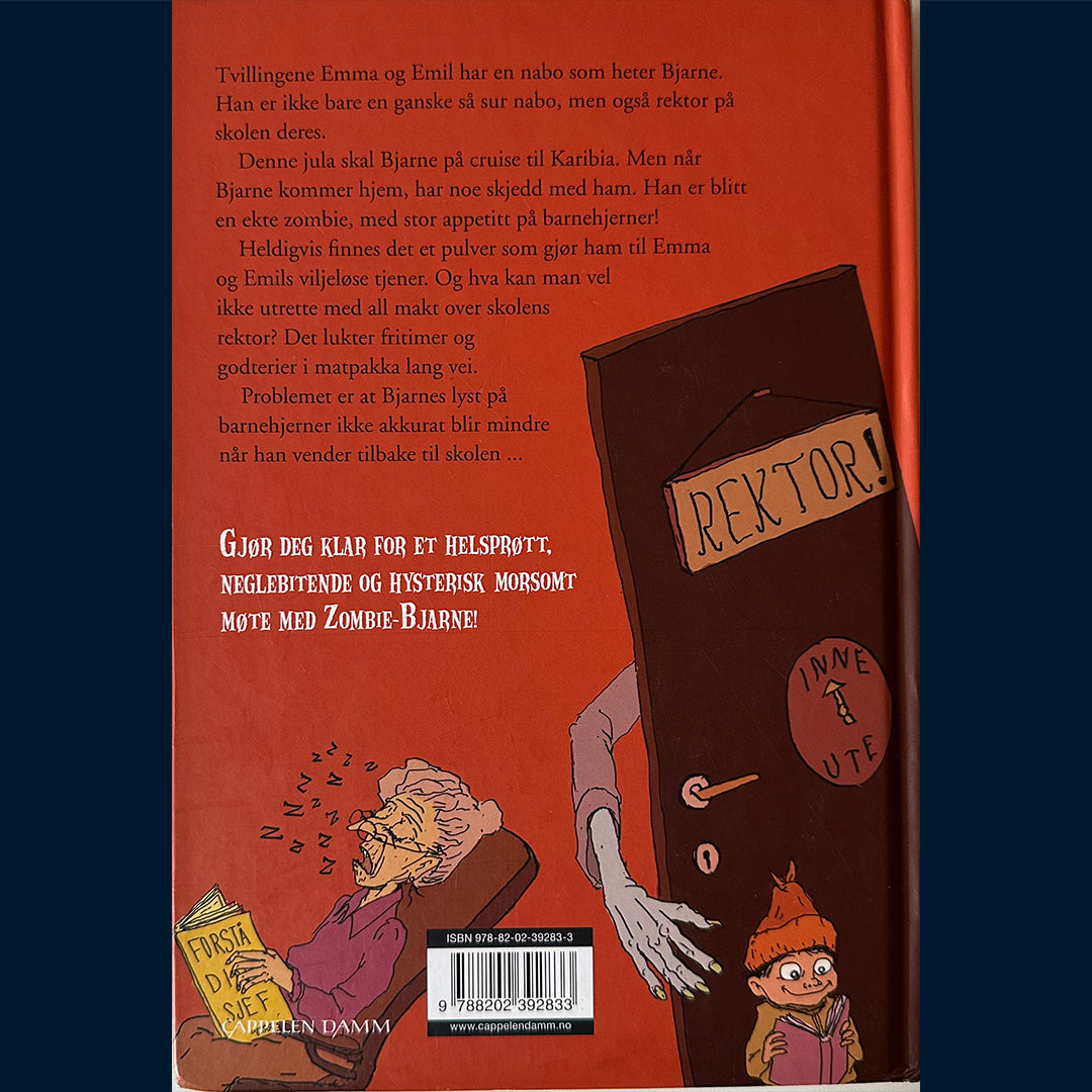 Ikke alle naboer er like hyggelige. Naboen til Emma og Emil er rektor på skolen hvor tvillingene går. Og han er av de rektorene man skal passe seg for, streng og skummel. Denne jula skal Bjarne på cruise til Karibia. Men da han vender hjem, har noe skjedd med ham. Emma og Emil oppdager at rektoren deres er blitt en ekte zombie, en levende død, med stor appetitt på barnehjerner!