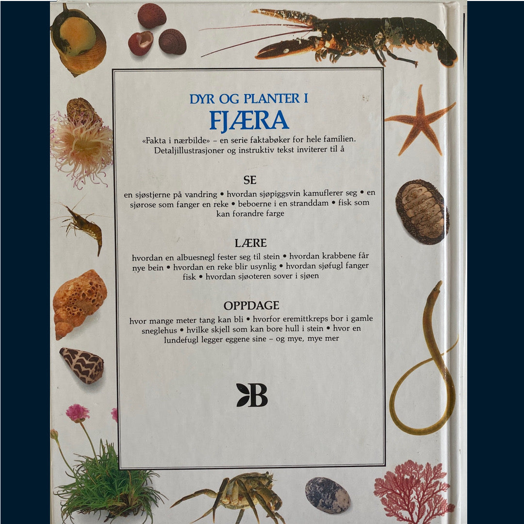 Her kan du se en sjøstjerne på vandring, lære hvordan en albuesnegl fester seg til stein, hvordan krabbene får nye bein, hvordan en reke blir usynlig, hvordan sjøfugl fanger fisk. Oppdage hvor mange meter tang kan bli, hvorfor eremittkreps bor i gamle sneglehus, hvilke skjell som kan bore hull i stein, hvor en lundefugl legger eggene sine - og mye, mye mer. Boken tilhører en serie som kalles Fakta i nærbilde, en serie faktabøker for hele familien.