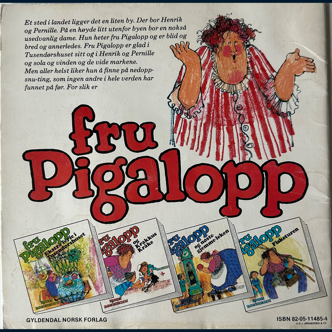 Et sted i landet ligger det en liten by. Der bor Henrik og Pernille. På en høyde litt utenfor byen bor en nokså usedvanlig dame. Hun heter Pigalopp og er blid og bred og annerledes. Fru Pigalopp er glad i Tusendørshuset sitt og i Henrik og Pernille og sola og vinden og de vide markene. Men aller helst liker hun å finne på nedopp-snu-ting, som ingen andre i hele verden har funnet på før.