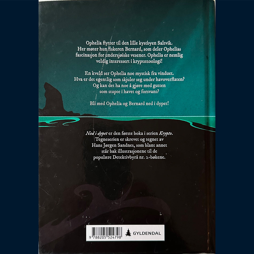 Ophelia flytter til den lille kystbyen Saltvik. Her skal hun bo med den nye fosterfamilien sin, den veldig blide og sporty familien Birken. Heldigvis treffer hun tidlig på naboen Bernard - han er fisker og deler Ophelias fascinasjon for undersjøiske vesener. Ophelia vil nemlig mye heller diskutere kryptozoologi enn å henge i en klatrevegg.På den første kvelden i sitt nye hjem, ser Ophelia noe mystisk fra vinduet. Hva er det egentlig som skjuler seg under havoverflaten? Og kan det ha noe å gjøre med gutten som stupte i havet og forsvant?Bli med Ophelia og Bernard ned i dypet!