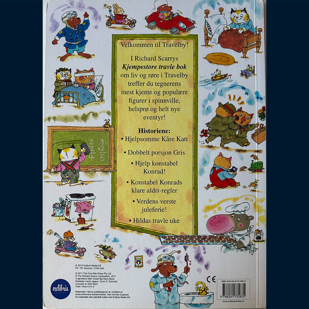 I Richard Scarrys Kjempestore travle bok om liv og røre i Travelby treffer du tegnerens mest kjente og populære figurer i spinnville og helsprø, helt nye eventyr!