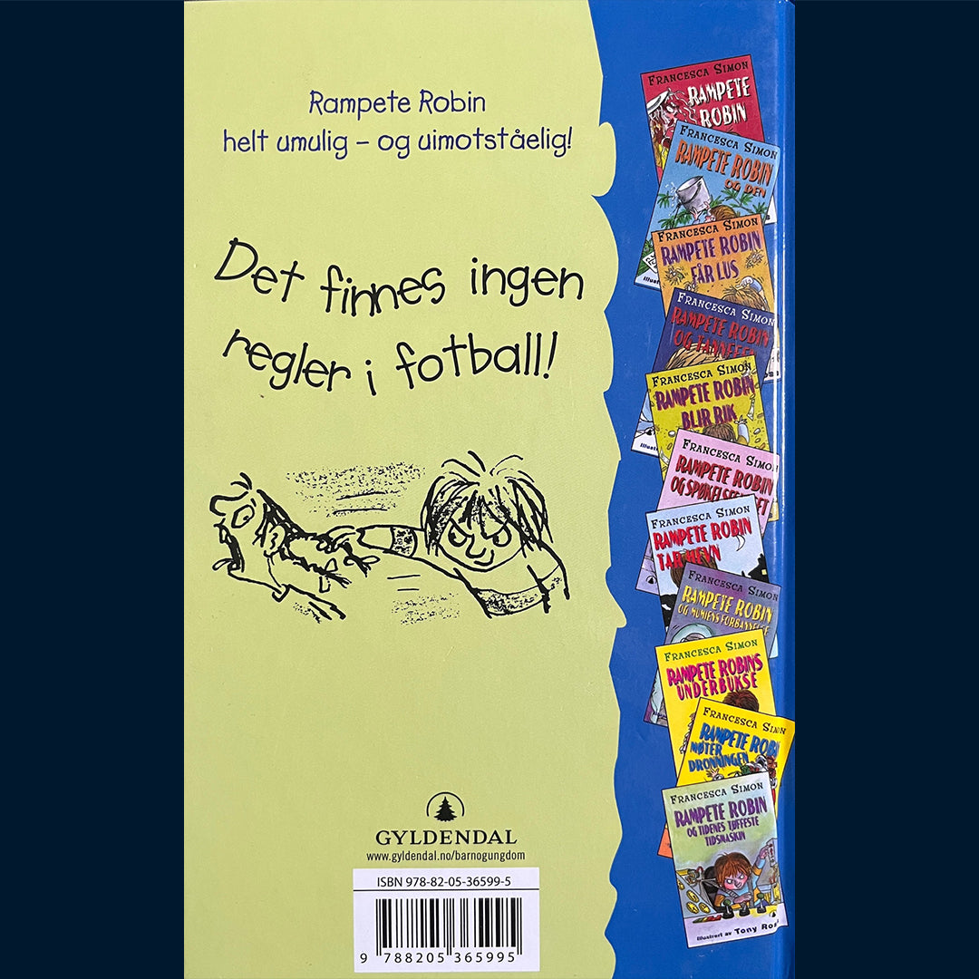 Rampete Robin spiller fotball! Pocketutgave av bok nr 14 i serien Rampete Robin er en sjarmerende bølle, som det egentlig ikke er mye vondt i. Det er bare det at han ikke passer helt inn noen steder. Han har bestemte meninger om hva han vil gjøre, han går ikke av veien for en krangel, og på skolen blir han alles syndebukk, og det er kanskje ikke så merkelig, så mye rart som han finner på.I denne boken må Robin vinne en fotballkamp for å få billetter til tidenes oppgjør mellom Man. U. og det lokale laget. Problemet er bare at Robin er elendig i fotball. Og hva skjer når det begynner en ny gutt i klassen, en gutt Robin kjenner fra før og ikke liker i det hele tatt?