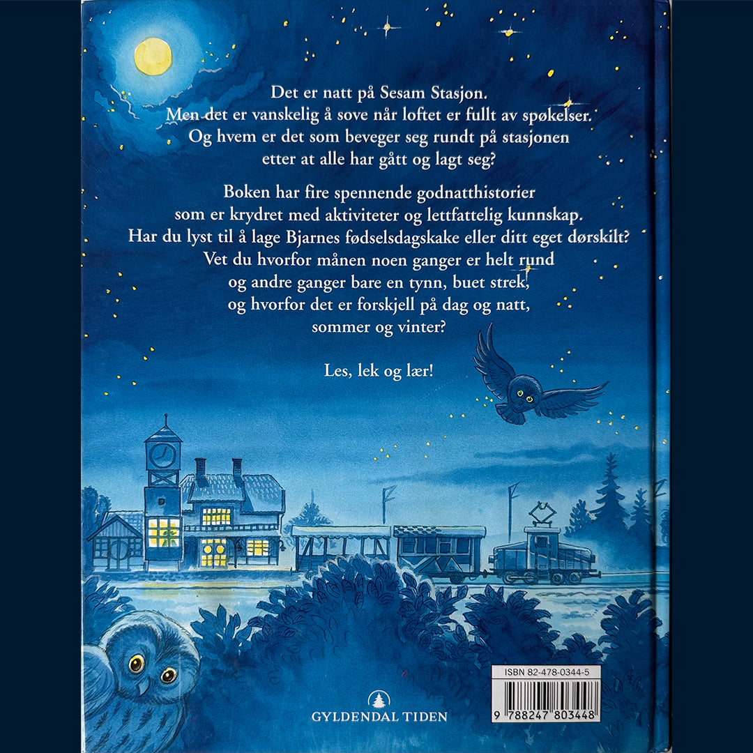 Det er natt på Sesam Stasjon. Men det er vanskelig å sove når loftet er fullt av spøkelser. Og hvem er det som beveger seg i stasjonslokalet etter at alle har gått og lagt seg? Det skjer forunderlige ting med de kjente vennene fra barne-TV mens de sover - eller skulle ha sovet. Boken har fire spennende, passe lange godnatthistorier som er krydret med aktiviteter og lettfattelig kunnskap. Her er godnattsanger, oppskrift på Bjarnes fødselsdagskake, og et eget dørkort å tegne på og klippe ut.
