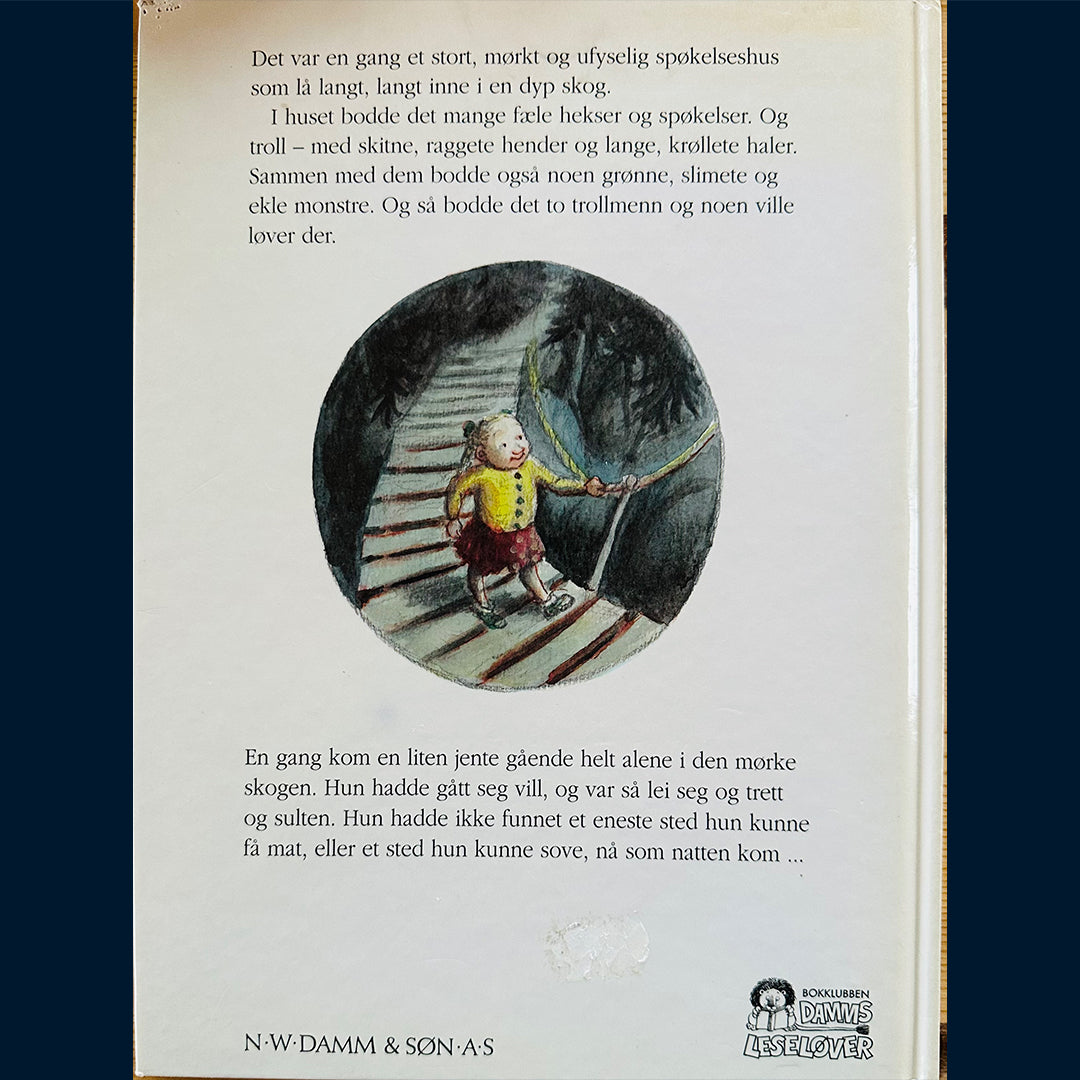 Det var en gang et stort, mørkt og ufyselig spøkelseshus langt inne i en dyp skog. Der bodde både hekser, spøkelser, troll og monstre, trollmenn og ville løver. En liten jente hadde gått seg vill i den dype skogen, og nå var hun både trett og sulten. Så fikk hun se at det lyste fra vinduet i et stort hus. Hun skyndte seg mot døra, og banket på.