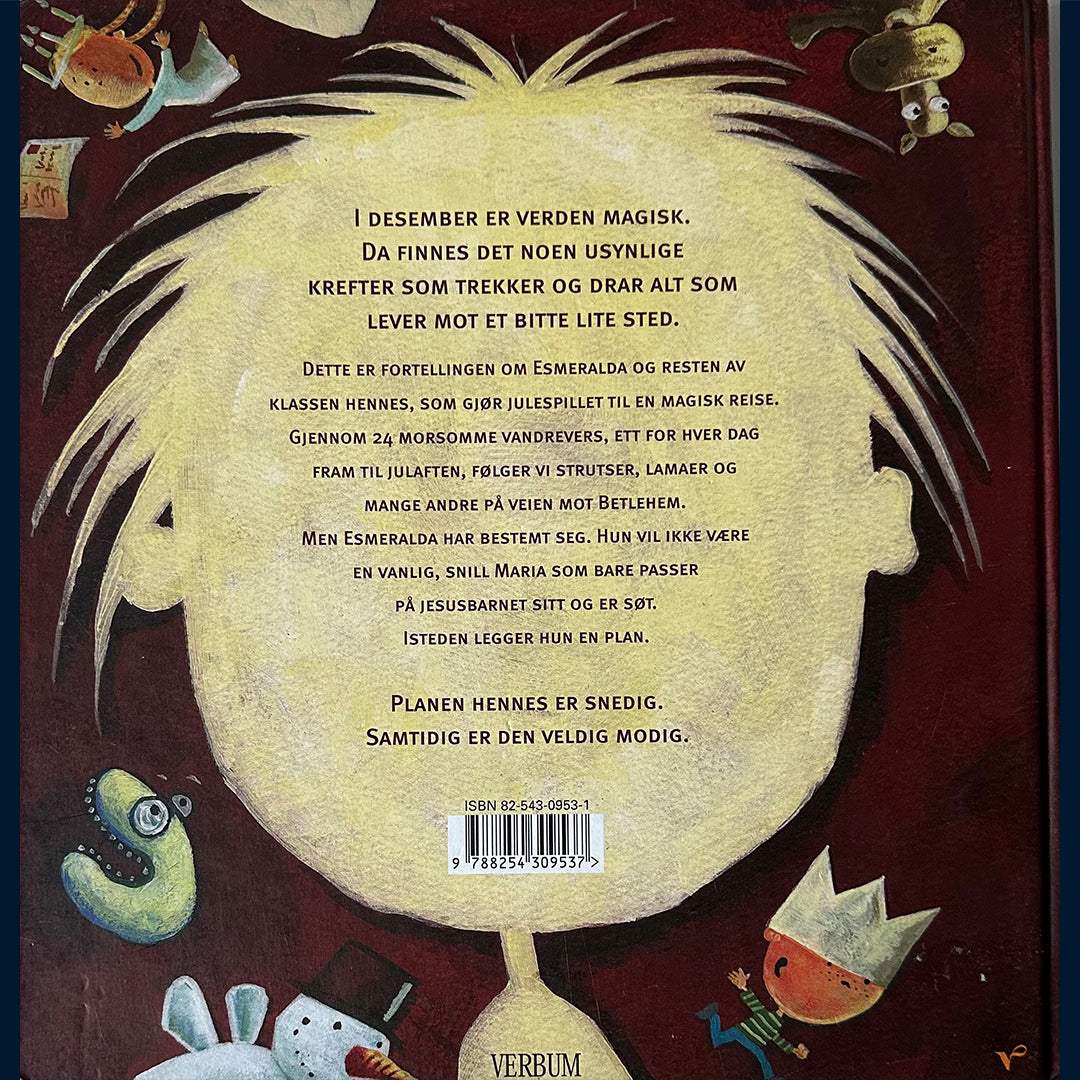 En adventskalenderbok om Esmeralda som sammen med klassen sin gjør julespillet til en magisk reise. Gjennom 24 morsomme vandrevers, ett for hver dag fram til julaften, følger vi både strutser, løver og Lucia på veien til Betlehem.