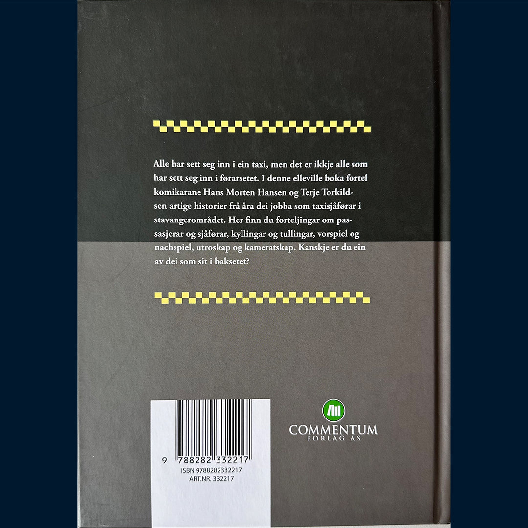 Alle har sett seg inn i ein taxi, men det er ikkje alle som har sett seg inn i førarsetet. I denne elleville boka fortel komikarane Hans Morten Hansen og Terje Torkildsen artige historier frå åra dei jobba som taxisjåførar i stavangerområdet. Her finn du forteljingar om passasjerar og sjåførar, kyllingar og tullingar, vorspiel og nachspiel, utroskap og kameratskap. Kanskje er du ein av dei som sit i baksetet?