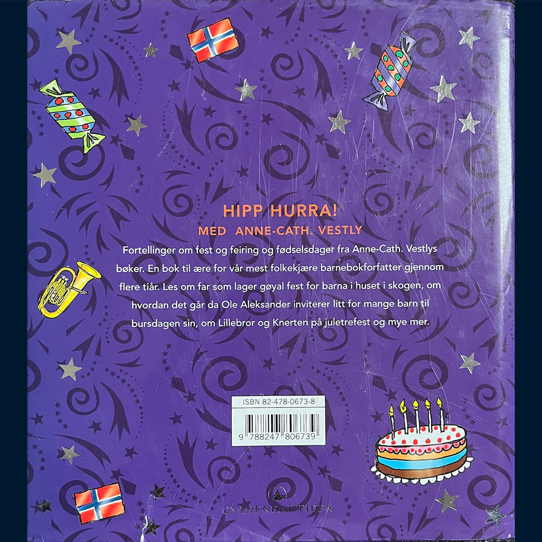 Denne boken er en spesialsamling av forskjellige kapitler fra Anne-Cath. Vestlys mangfoldige forfatterskap hvor temaet er fest. Boken er utgitt i forbindelse med Anne-Cath.s 80 års dag i februar 2000. Vi møter de fleste kjente figurene fra det vestlyske univers, Ole Alexander Fillibom-bom-bom, Lillebror og Knerten, Aurora, Guro, Kaos og Mormor og de åtte ungene.