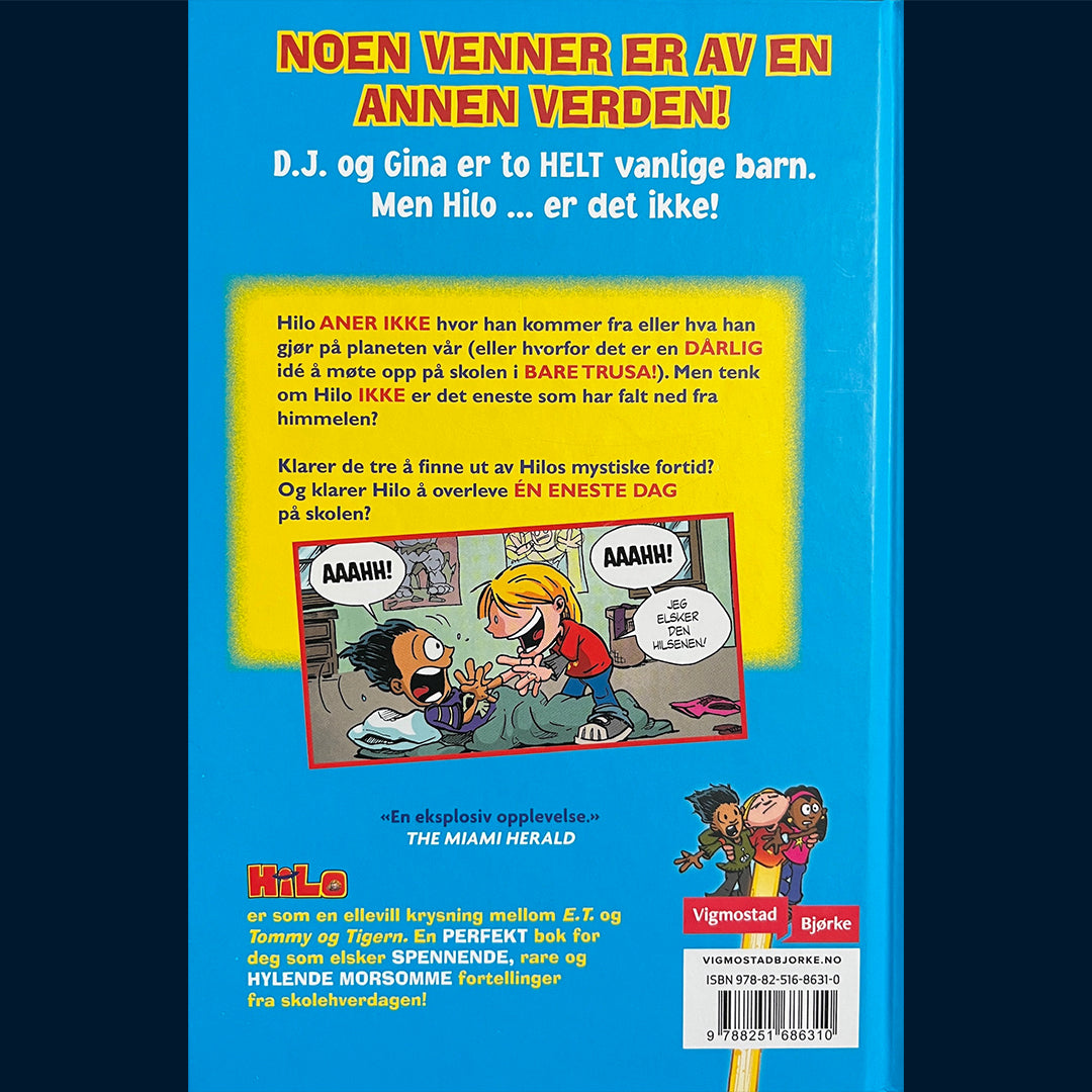D.J. og venninnen hans, Gina, er to ganske vanlige barn - helt til en mystisk gutt krasjlander fra himmelen! Hilo aner ikke hvor han kommer fra eller hva han gjør på jordkloden (eller hvorfor det er en dårlig idé å møte opp på skolen i bare trusa!) Men tenk om Hilo ikke er det eneste som har falt ned? Klarer de tre å finne ut av Hilos mystiske fortid? Klarer Hilo å overleve én eneste dag på skolen? Og er D.J. og Gina klare for å redde verden?